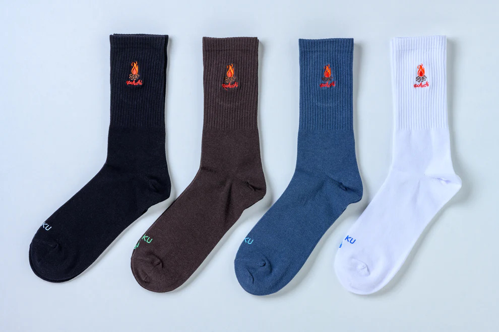 その火の神をイメージしたオリジナルソックスで大切な方の足を温かく守ります。